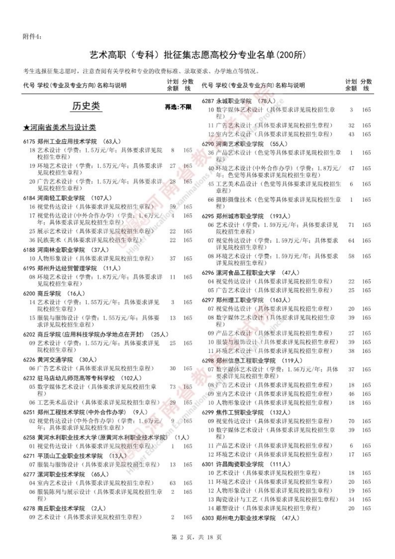 4.艺术高职(专科)批征集志愿高校分专业名单(200所)