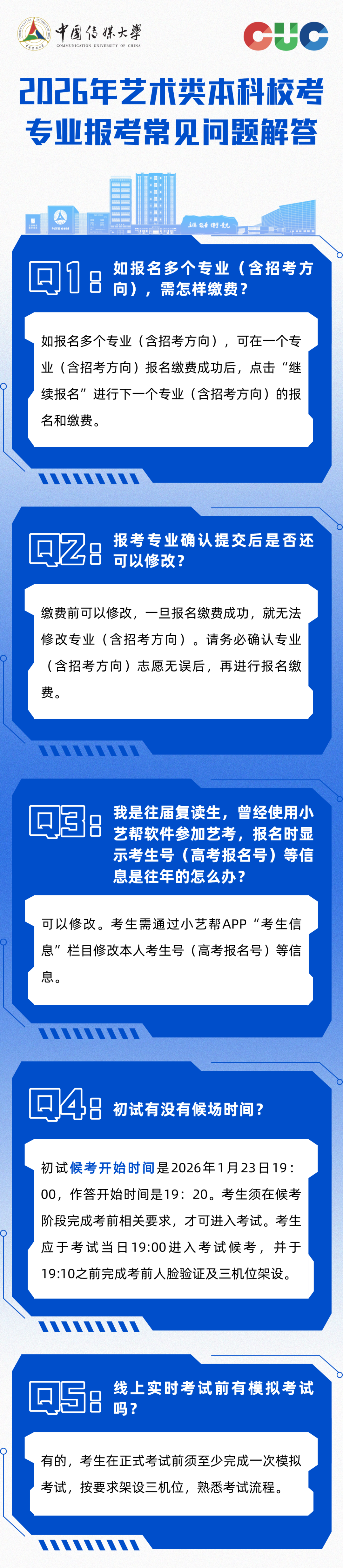 中国传媒大学2026年艺术类本科校考专业报考常见问题解答