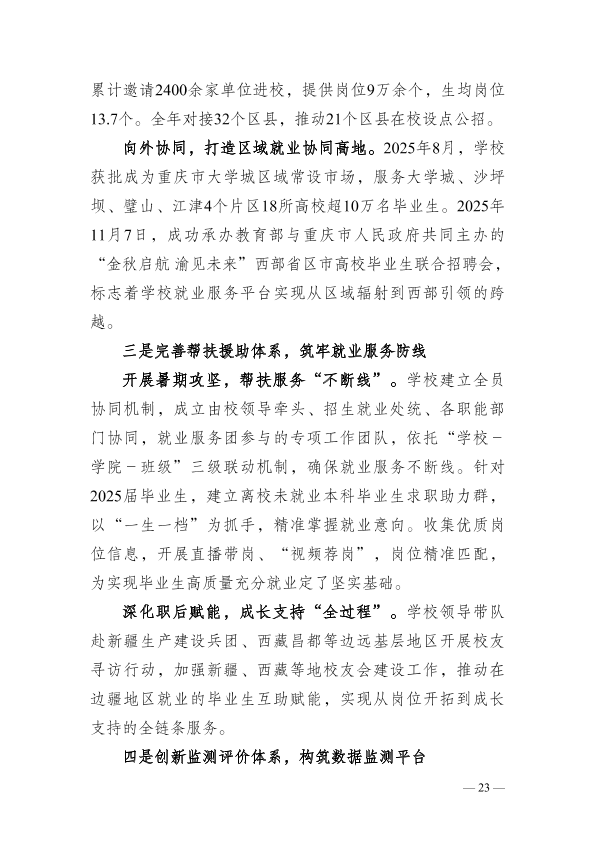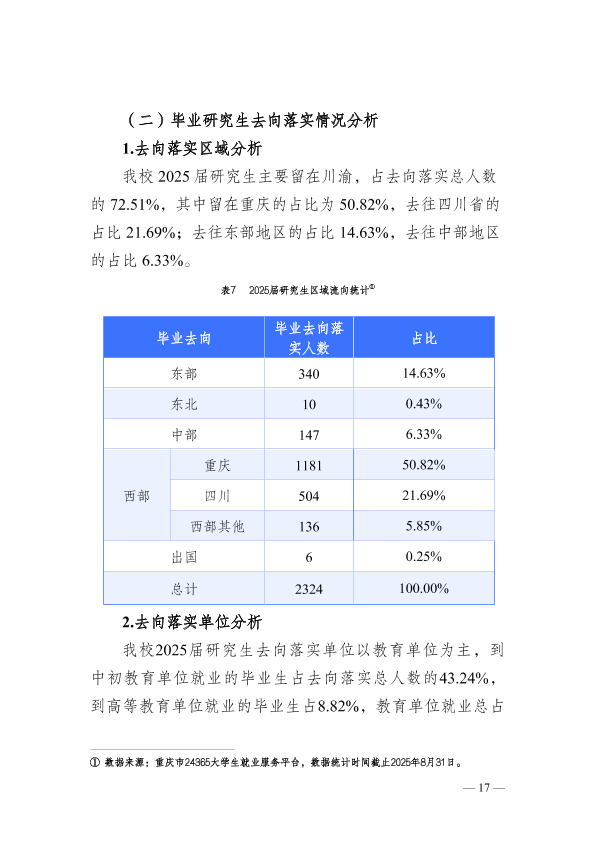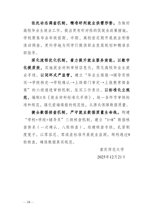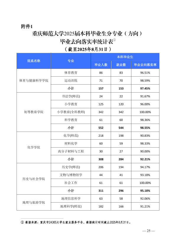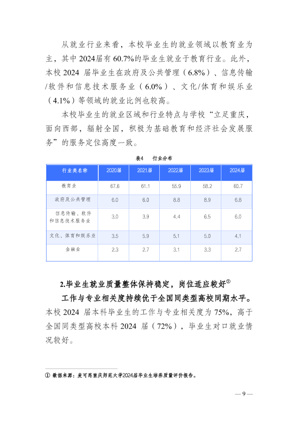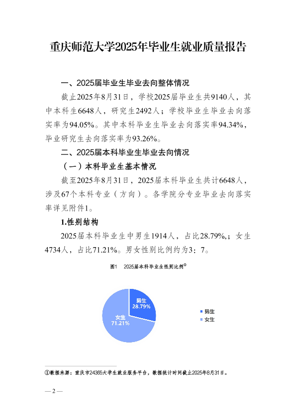 重庆师范大学2025年就业质量报告