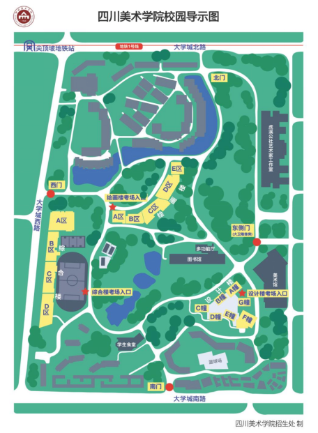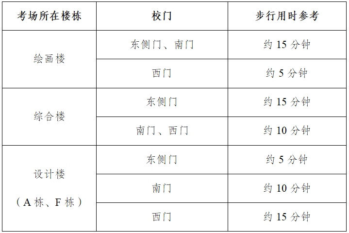 在四川美术学院虎溪校区考点参加考试的考生,可从校园东侧门、南门、西门进出考点。