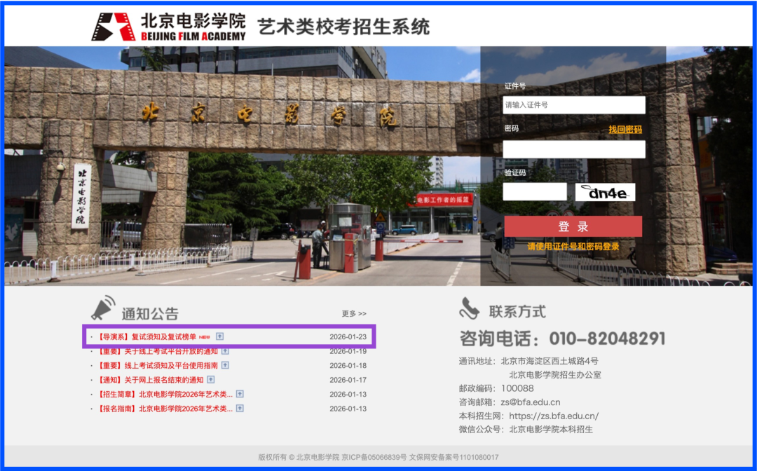 导演系戏剧影视导演专业的复试榜单(初试结果)及复试须知已公布,考生可访问我校招生系统(https://bkbm.bfa.edu.cn)查询是否通过考试。